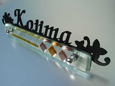 ステンレスとキルンガラスのそれぞれの良さを融合させた、重厚感と透明感…どちらの魅力も活かした表札です!
