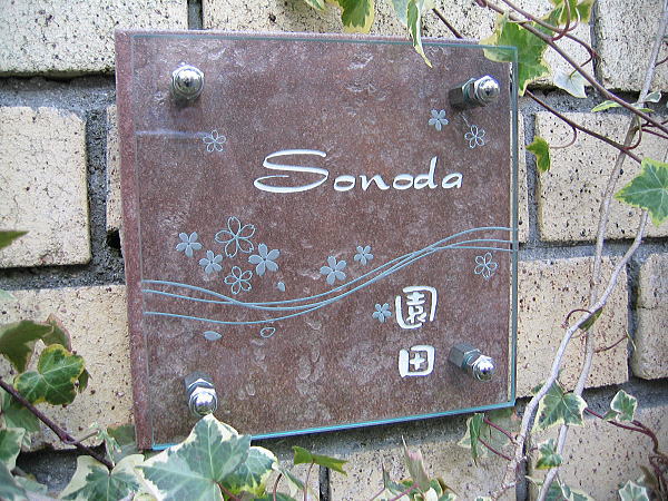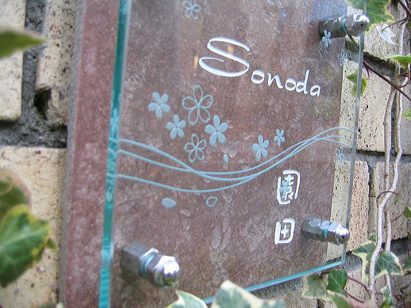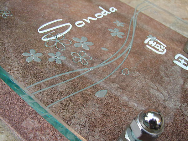 透明ガラスにいろいろな桜模様デザインや、あなただけのオリジナルデザイン表札を