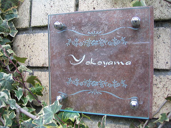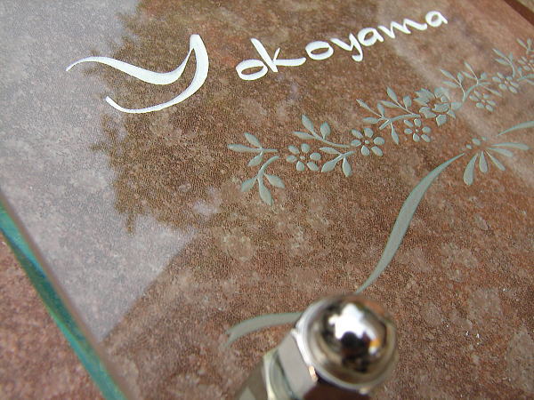 透明ガラスにオシャレな草花模様をあしらったデザイン表札ベースに