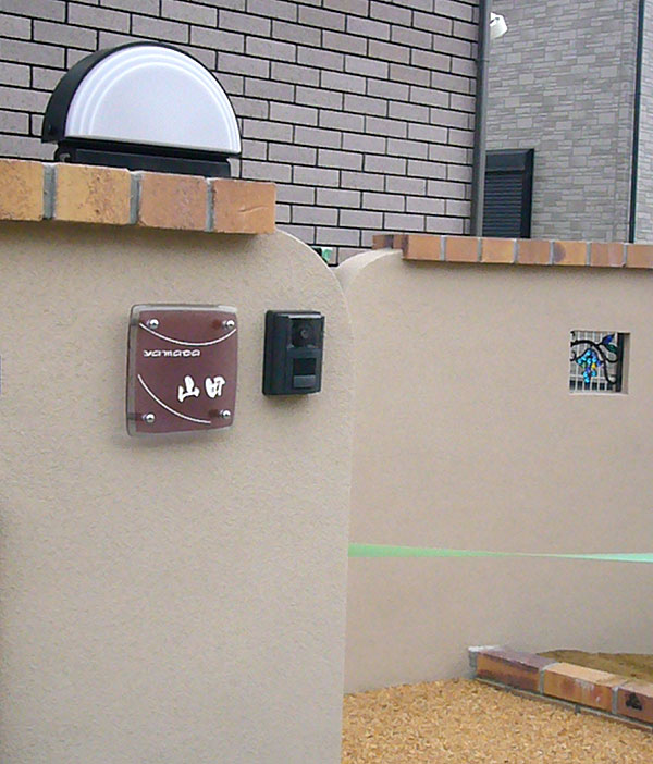 表札施工例 ブラウン・レッド系の壁