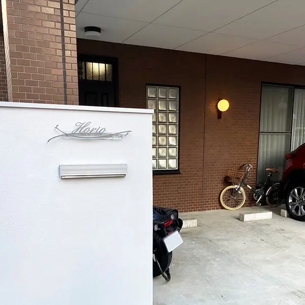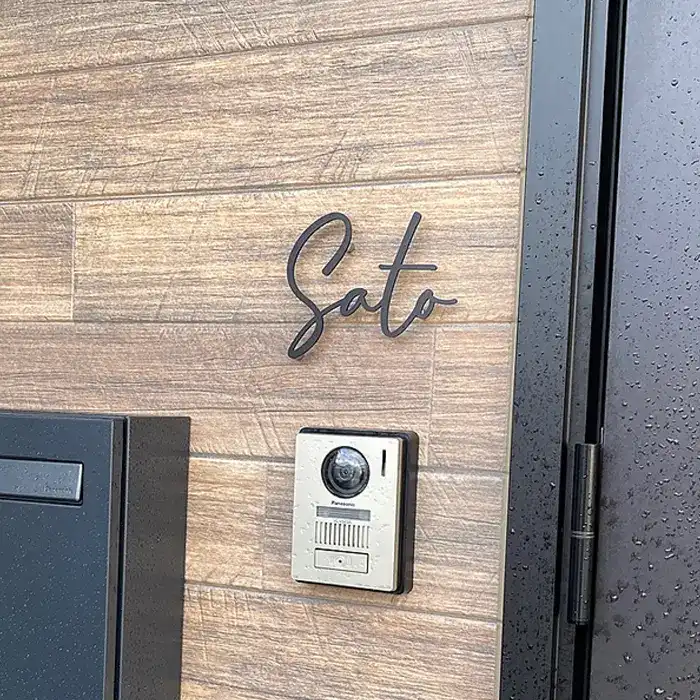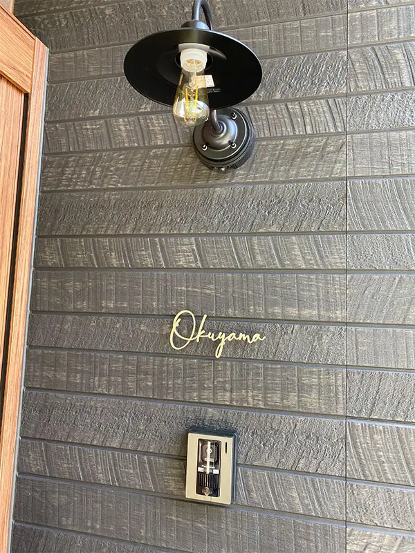 オプションのイラストが豊富で迷いましたが、クーポン期間でお得にかえたぶん、イラストで可愛く仕上がり満足です。筆記体と、素材の風合いも素敵で、黒い外壁にもマッチしてよかったです。高級感があります。取り付けは最初自分でして、うまく取り付けられなかった為家の施工業者にお願いしました。