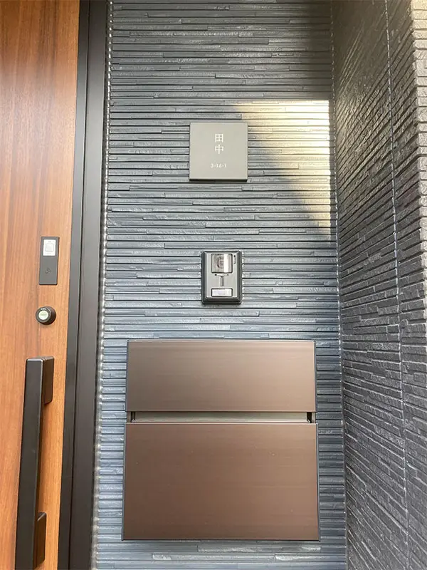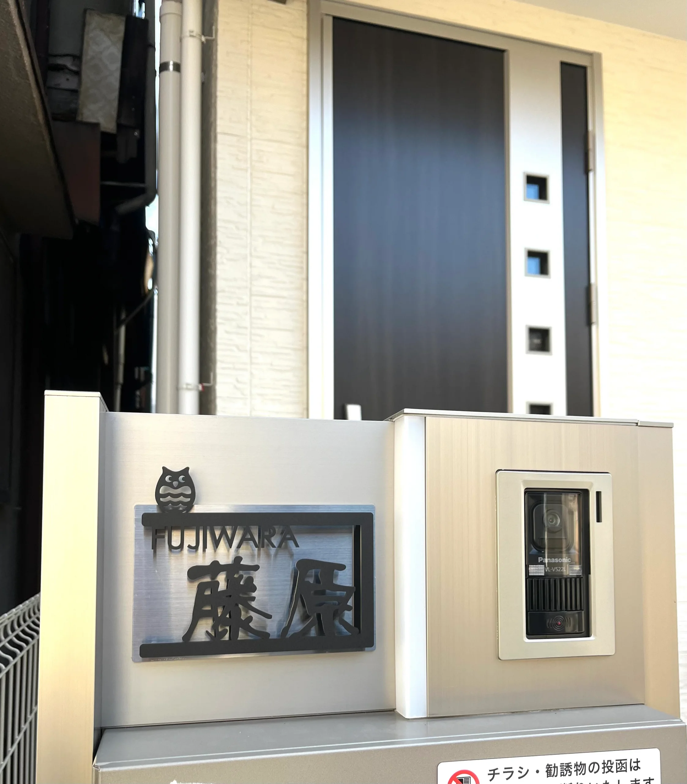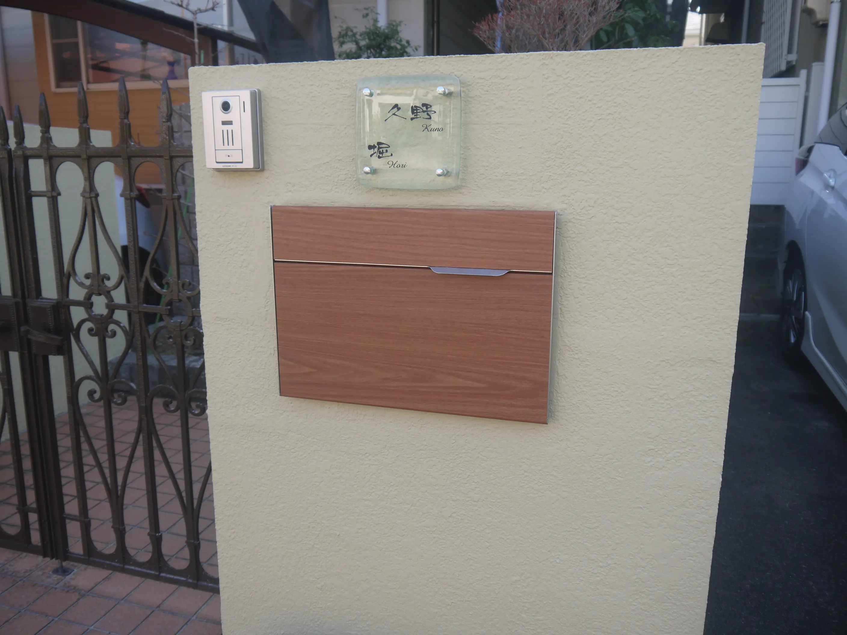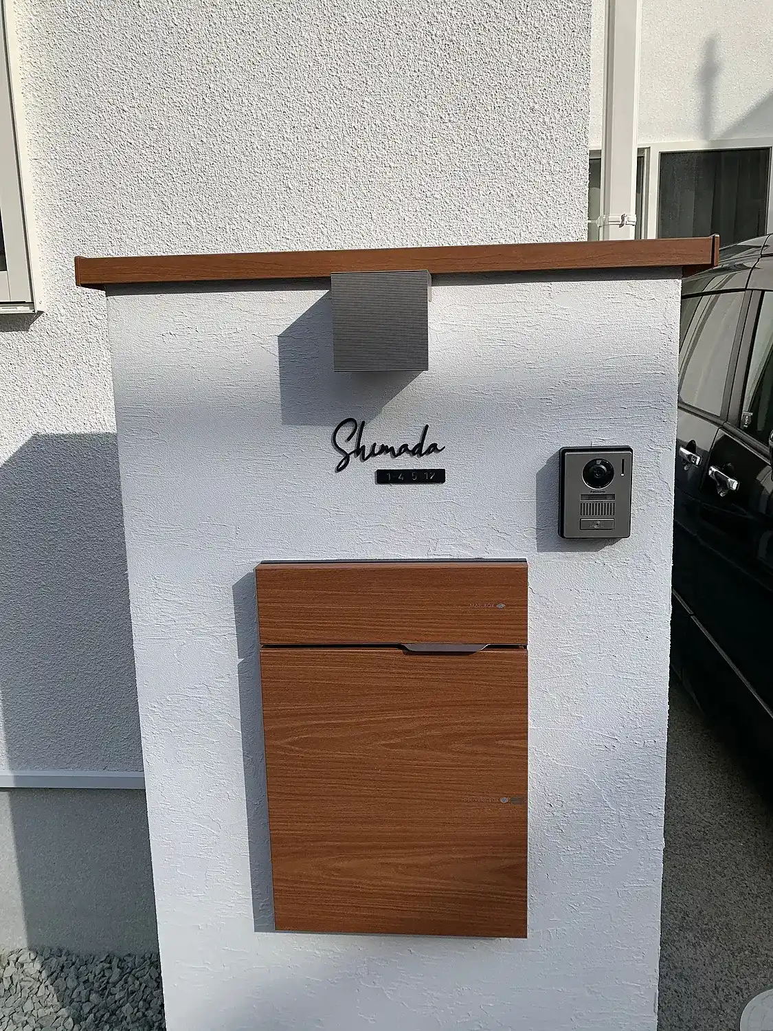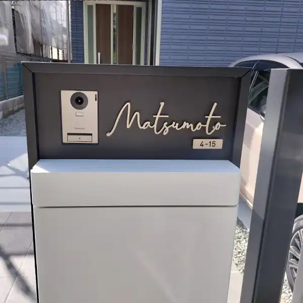 3デザインまで無料でデザイン作成をして頂けるので3デザインまでに絞って作成依頼をお願いしました。書体もたくさんあるので、3デザインまでに絞るのもとても苦労しました笑迷いに迷って決めたデザインは届いてビックリ!想像以上に素敵なお品でテンション上がりました!番地も入れるか迷いましたが、万が一引越しがあったりした場合のことを考えて苗字のみに。接着剤はお店で販売していたものを購入。接着のやり方も表札と同梱されていたのでその通りにやりました。ポストと宅配ボックスはパナソニックのアーキフレームです。合うか心配でしたが、結果とてもマッチしていて良かったです!こちらでお願いしてとても良かったです!