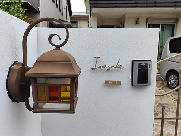 事前のメールで細かいオーダーを聞いてくださり注文できた。色合いがわかりにくいが、門柱と照明と雰囲気がマッチしていてとても気に入っています。
