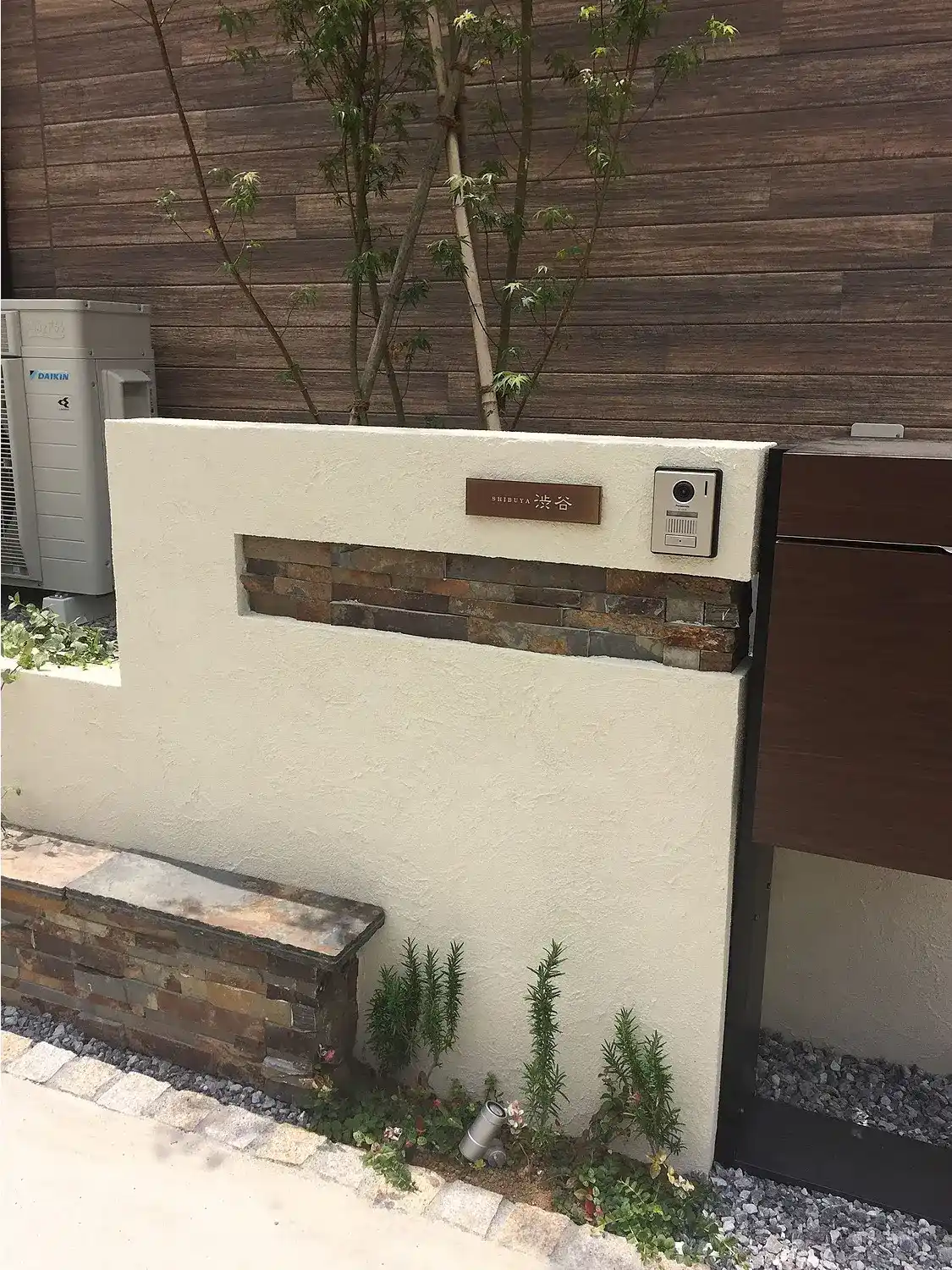 LCSW-01 門柱にインターホンなしで表札だけ取り付けました。サイズもノーマルサイズで良い感じに取り付き、見た目も少し購入前は少し派手になりすぎるかな?とも思ってたのですが、案外シンプルな印象で予想以上にいい感じに仕上がりました。