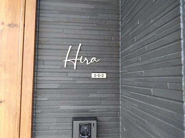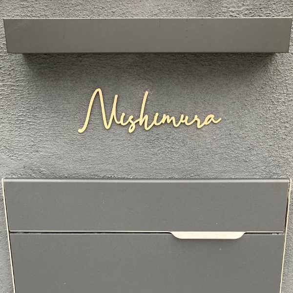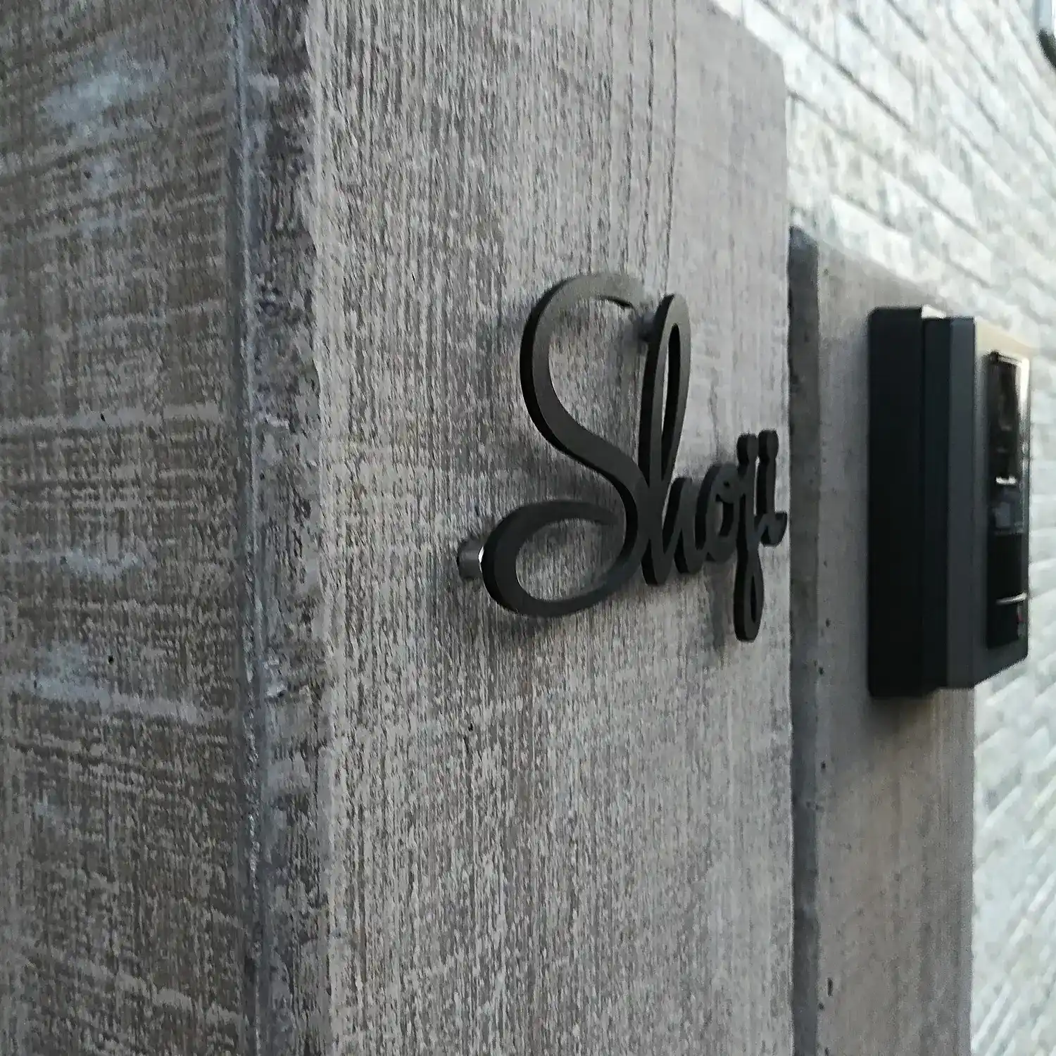 新築の最後のピース 新築の完成に伴い発注させて頂きました。一度レイアウトして頂いたのですが、「表札を作るのは最後だろう」と考え、名前は自分の作った文字、住所の数字は使いたかったフォントに返させて頂いた際も、迅速丁寧にご対応頂きました。制作期間はそれなりに掛かりましたが、我が家に到着し開封した時に、その仕上がり…美しさとしっかりした作りに感激致しました。出来上がった表札は、家族全員で取り付け作業をしました。子供達にも良い経験となったでしょうし、改めて御社に依頼して良かったと大変満足致しました。今回は我が家の最後のピースの製作誠に有難うございました!