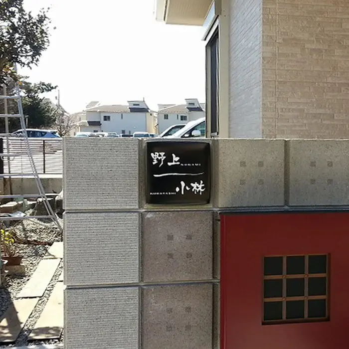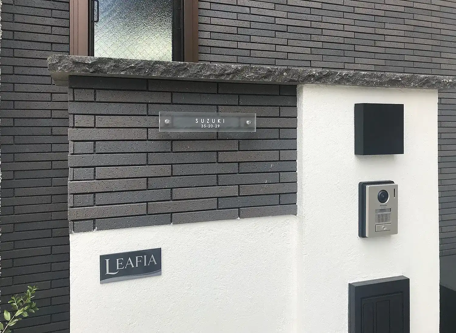 大満足の新築完成(仕上げ)に表札のサイズ自体が大きいわけではないですが,存在感あり道ゆく人の目を引く門構えになりました。独創的な門柱になり,大満足です。何色にするか悩みましたが,白壁に黒の英自体が映えて,黒を選んでよかったと思います。周りのお宅とはまず被らない新居の顔ができて,満足以外ない買い物ができました。