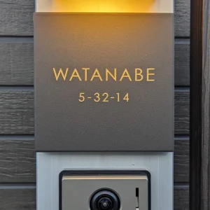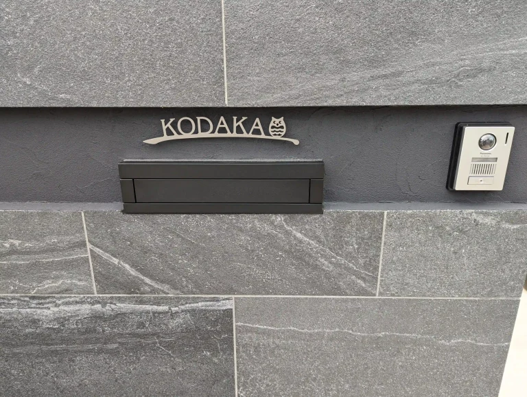 3デザインまで無料でデザイン作成をして頂けるので3デザインまでに絞って作成依頼をお願いしました。書体もたくさんあるので、3デザインまでに絞るのもとても苦労しました笑迷いに迷って決めたデザインは届いてビックリ!想像以上に素敵なお品でテンション上がりました!番地も入れるか迷いましたが、万が一引越しがあったりした場合のことを考えて苗字のみに。接着剤はお店で販売していたものを購入。接着のやり方も表札と同梱されていたのでその通りにやりました。ポストと宅配ボックスはパナソニックのアーキフレームです。合うか心配でしたが、結果とてもマッチしていて良かったです!こちらでお願いしてとても良かったです!