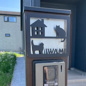 オプションのイラストが豊富で迷いましたが、クーポン期間でお得にかえたぶん、イラストで可愛く仕上がり満足です。筆記体と、素材の風合いも素敵で、黒い外壁にもマッチしてよかったです。高級感があります。取り付けは最初自分でして、うまく取り付けられなかった為家の施工業者にお願いしました。