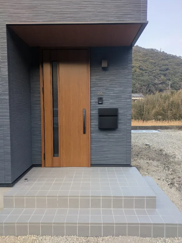 見るたび嬉しくなります。ブラウンにゴールド文字にしましたがとっても可愛いです!質感の艶感もちょうどよく、タイルも単色じゃないのでのっぺりして見えずに高級感あります。対応も発送も早く、文字レイアウトの微調整にも快く応じてくださりありがとうございました。新築の顔としてこれからお世話になります!